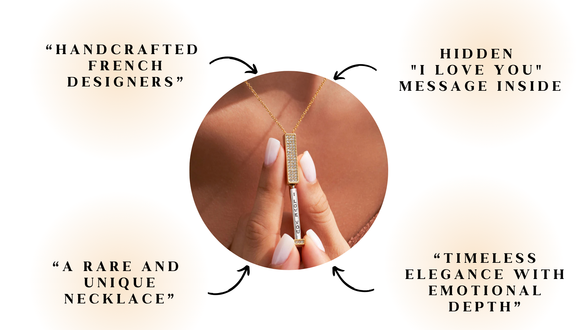 Each pendant unveils a hidden message “I Love You” capturing the essence of your affection.